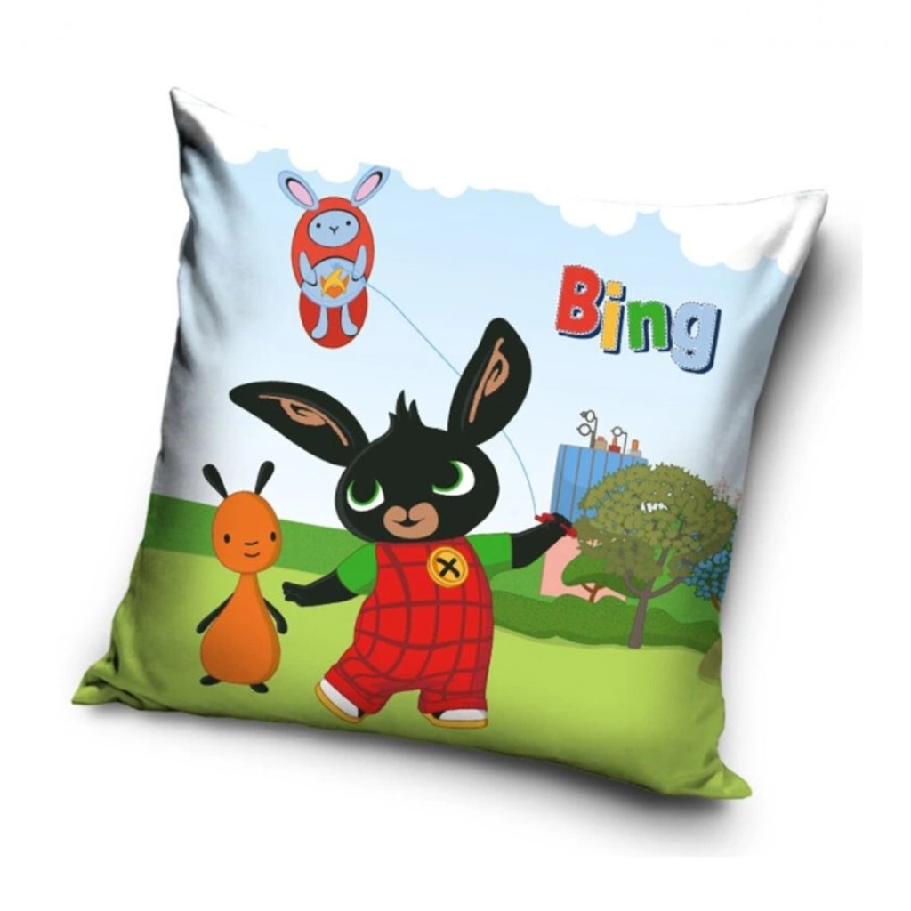Licenčný vankúšik s motívom Zajačika Binga a Flopa ako púšťajú draka.Názov: Zajačik Bing Púšťanie draka.