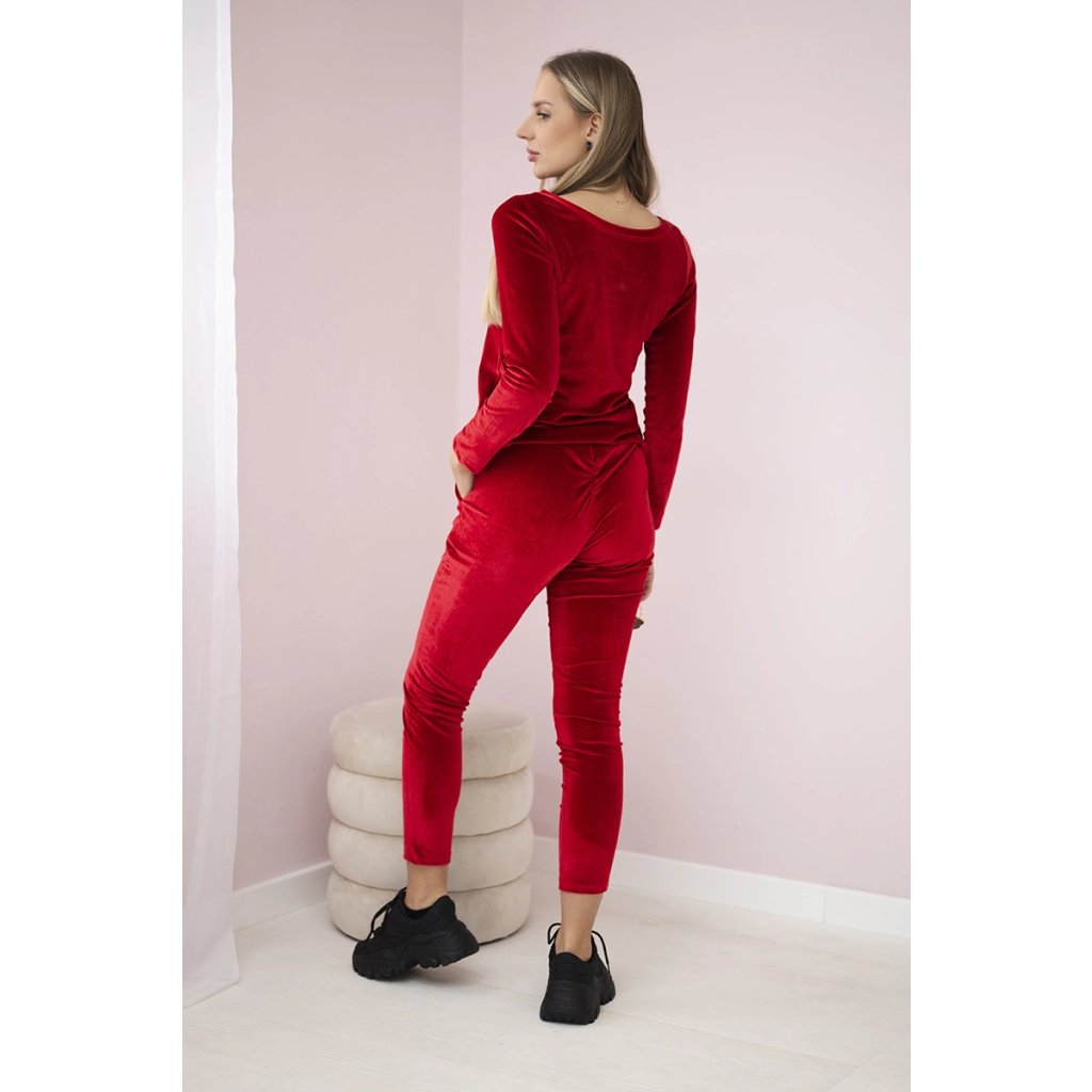 Prezentujeme Vám komplet blúzky a nohavíc. Komplet vyrobený z velúru. Blúzka a nohavice majú na zadnej strane riasenie. Veľmi módny a štýlový komplet. Komplet je vyrobený z kvalitného materiálu. Veľkosť je univerzálna a bude vhodná pre dámy vo veľkosti S, M alebo L.