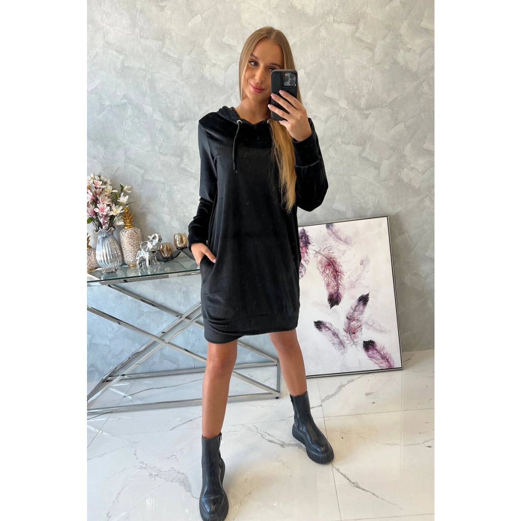 Predstavujeme vám velúrové šaty. Šaty majú kapucňu. Šaty sú vyrobené z kvalitného materiálu. Veľkosť je univerzálna a vyhovuje dámam, ktoré nosia veľkosť S, M alebo L.