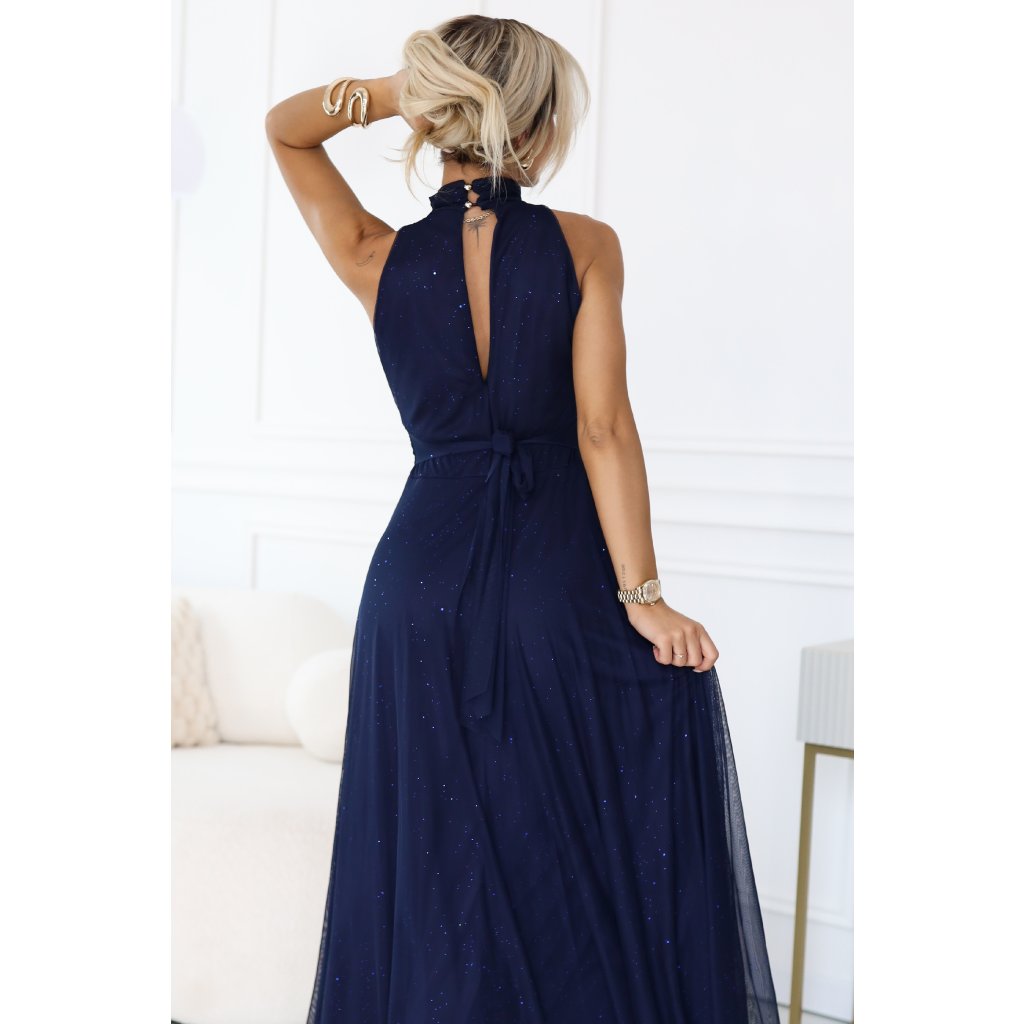 Šaty Veronica - luxusné dlhé šaty s leskom - námornícky modré