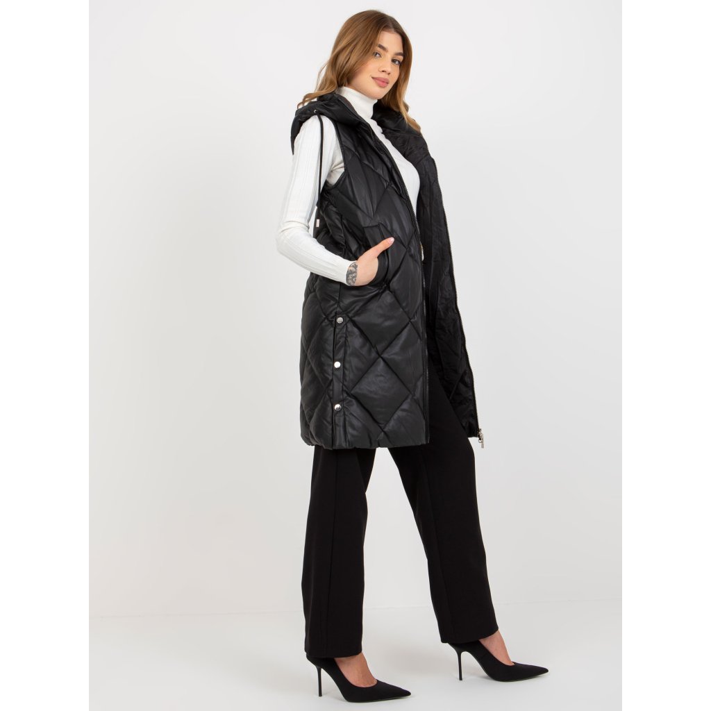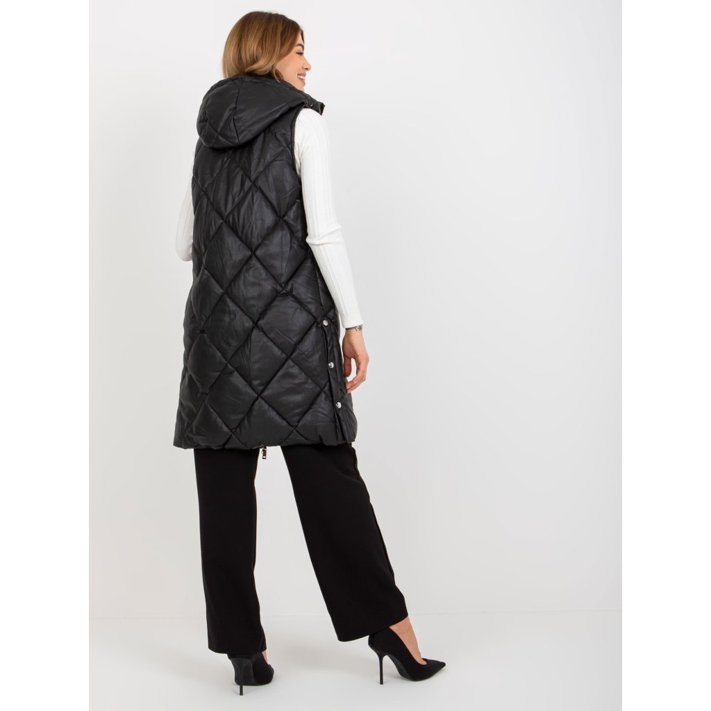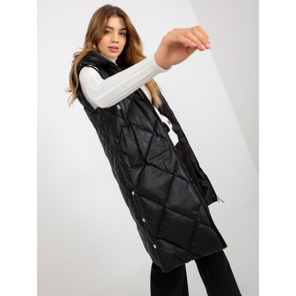 Čierna prešívaná vesta z umelej kože.