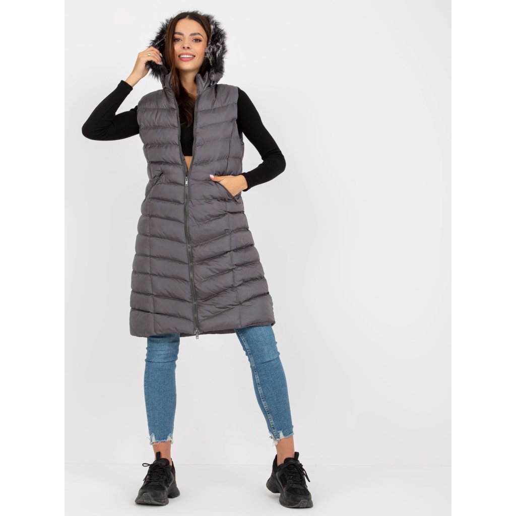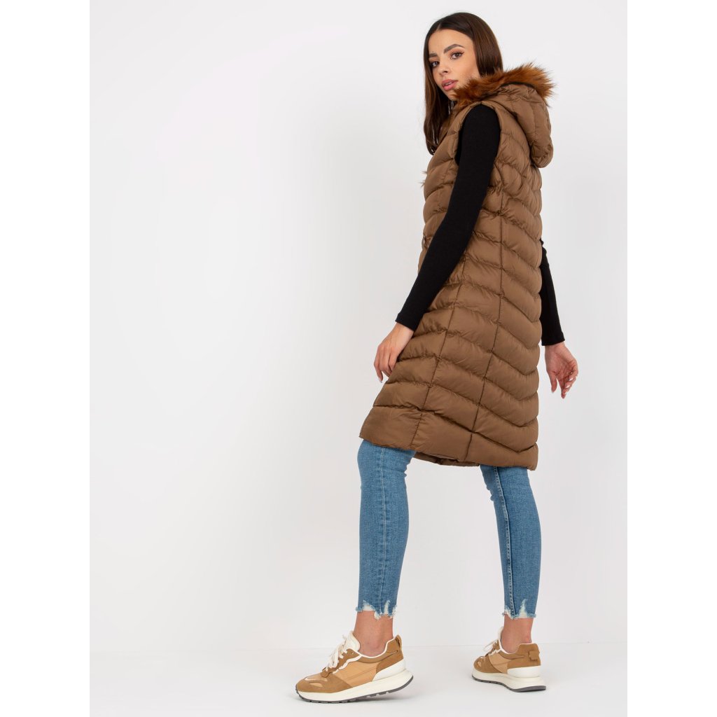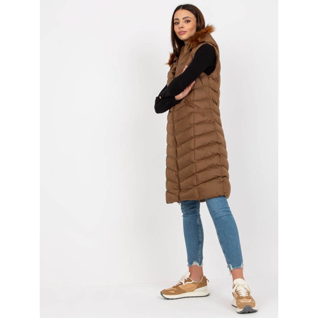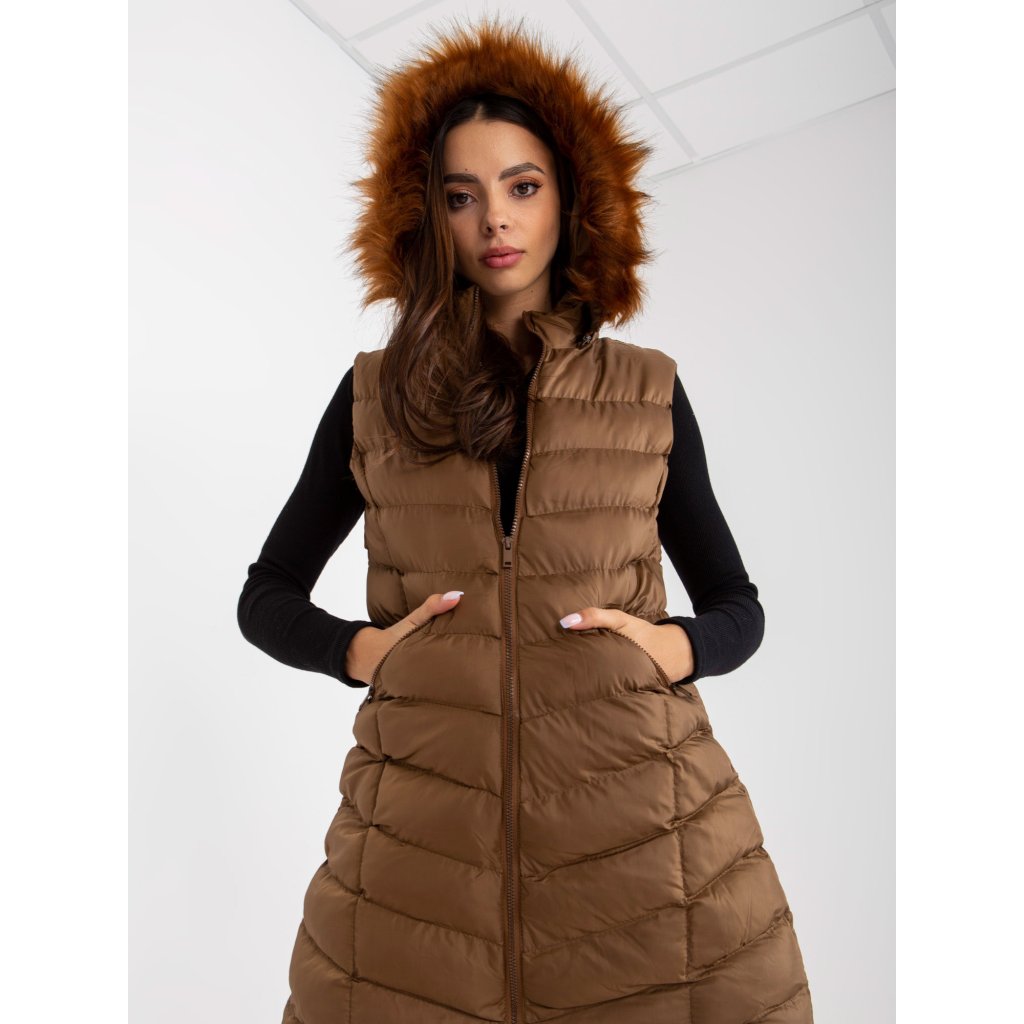 Hnedá dlhá páperová vesta s kapucňou od RUE PARIS.