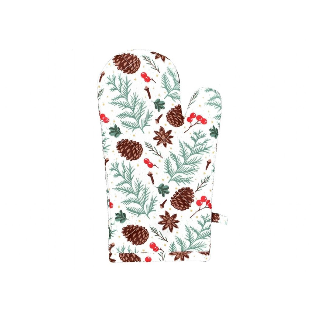Praktická vianočná chňapka s motívom šišiek, ihličia, bobuliek a korenia na bielom podklade je nevyhnutným pomocníkom každej gazdinky. Chráni pred teplom a zároveň krásne doladí sviatočnú atmosféru v kuchyni.
