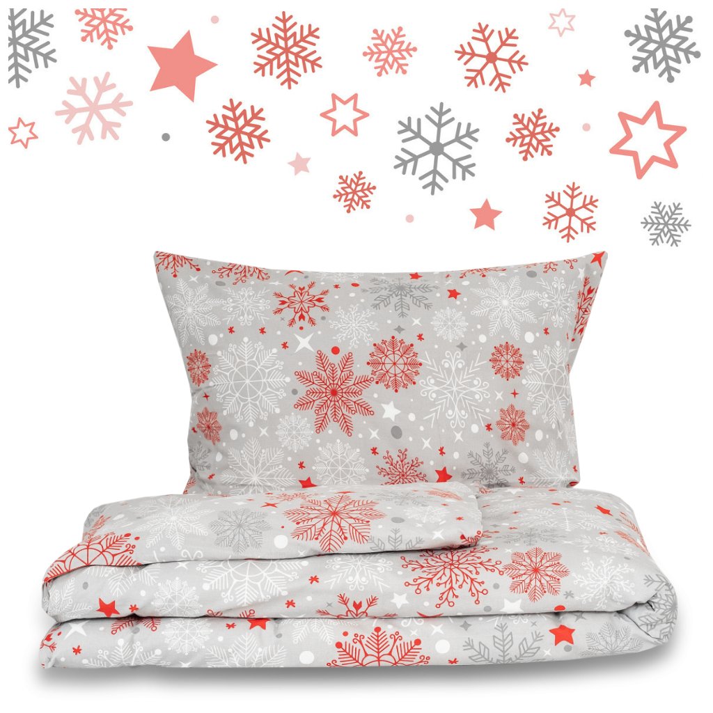 Vianočné obliečky 140x200, 70x90cm VLOČKY červeno-sivé