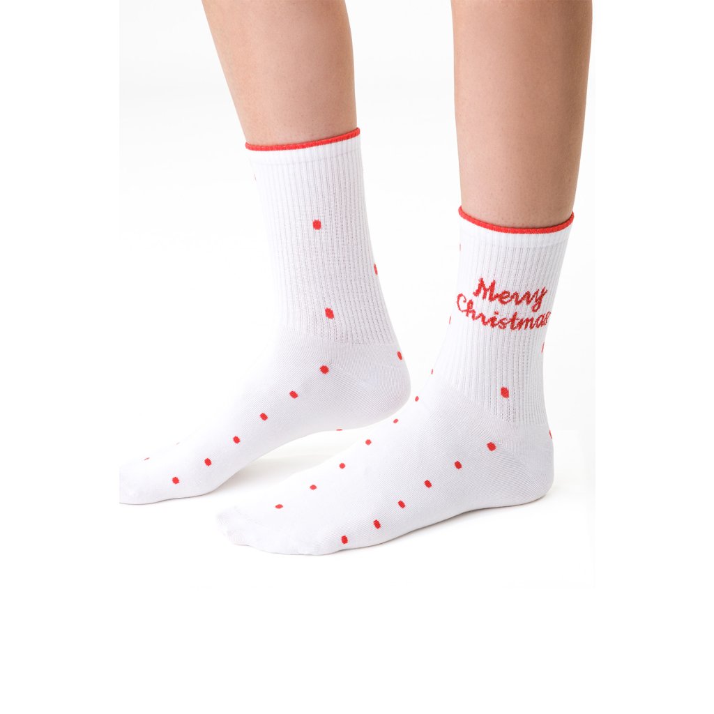 Limitovaná vianočná kolekcia! Vianočné ponožky pre ženy sú k dispozícii v niekoľkých dizajnoch a rôznych farbách. Bavlnené ponožky sú vyrobené z najkvalitnejšej priadze. Decentné dekorácie možno ľahko zladiť s akýmkoľvek štýlom bez ohľadu na dominantnú farbu. Steven Ponožky sú vyrobené z vysoko kvalitných surovín na základe moderných technológií. Zloženie: 78% bavlna, 14% polyamid, 5% polypropylén, 3% elastan.Dodatočné parametre