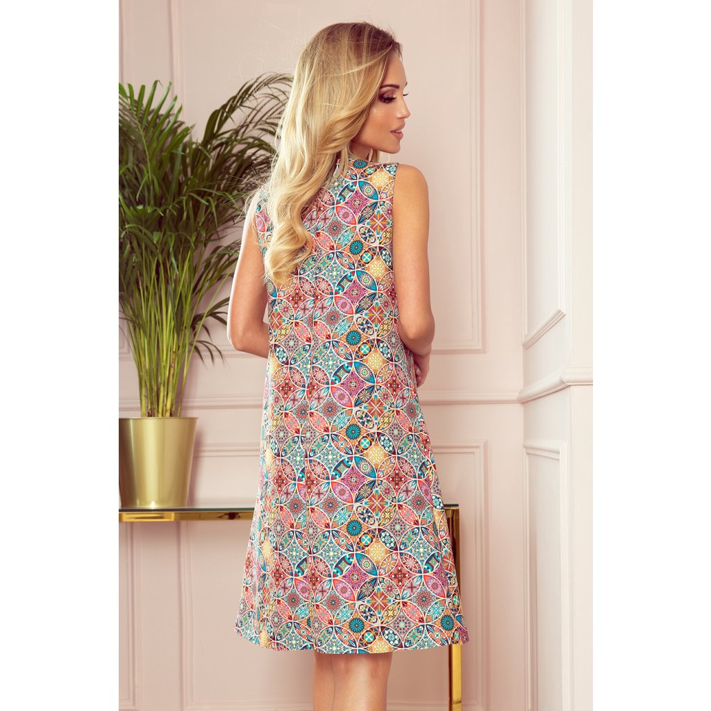 Victoria - lichobežníkové šaty s farebným vzorom. Poľská produkcia. Značka Numoco.