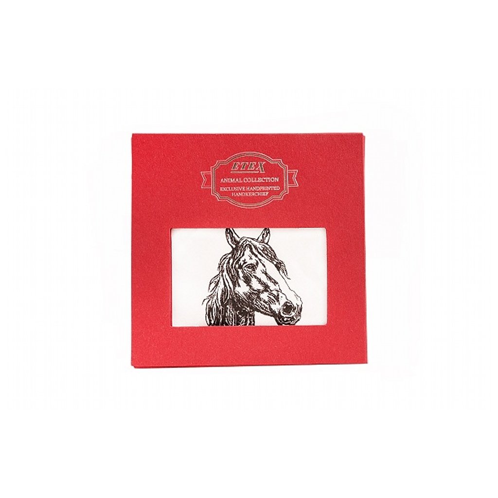 Štýlový vreckovka L35 s motívom koňa, balený v darčekovej krabičke po 1 kuse.