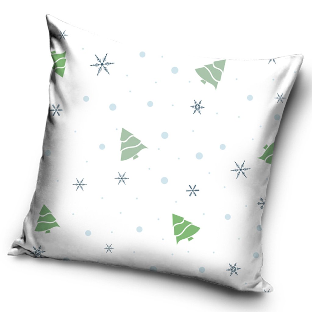 Hebký vianočný obliečka na vankúšik Biele Vianoce s motívom stromčekov a vločiek