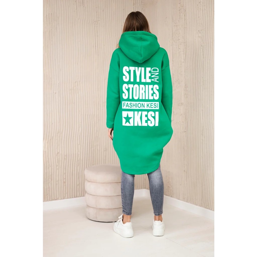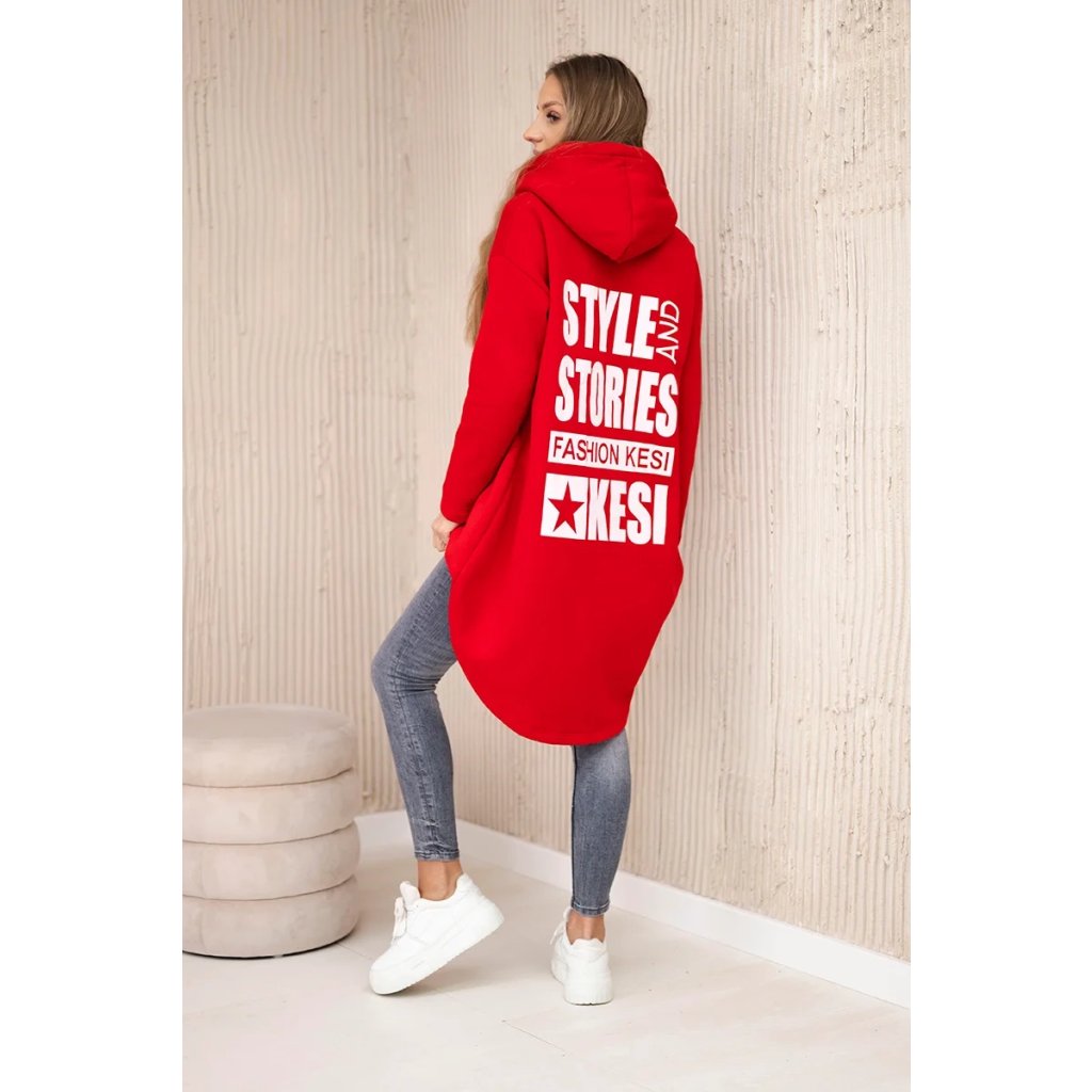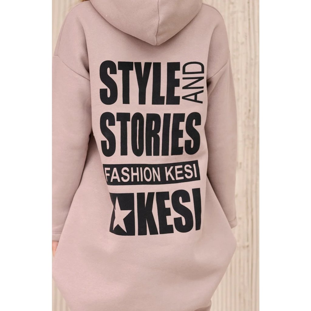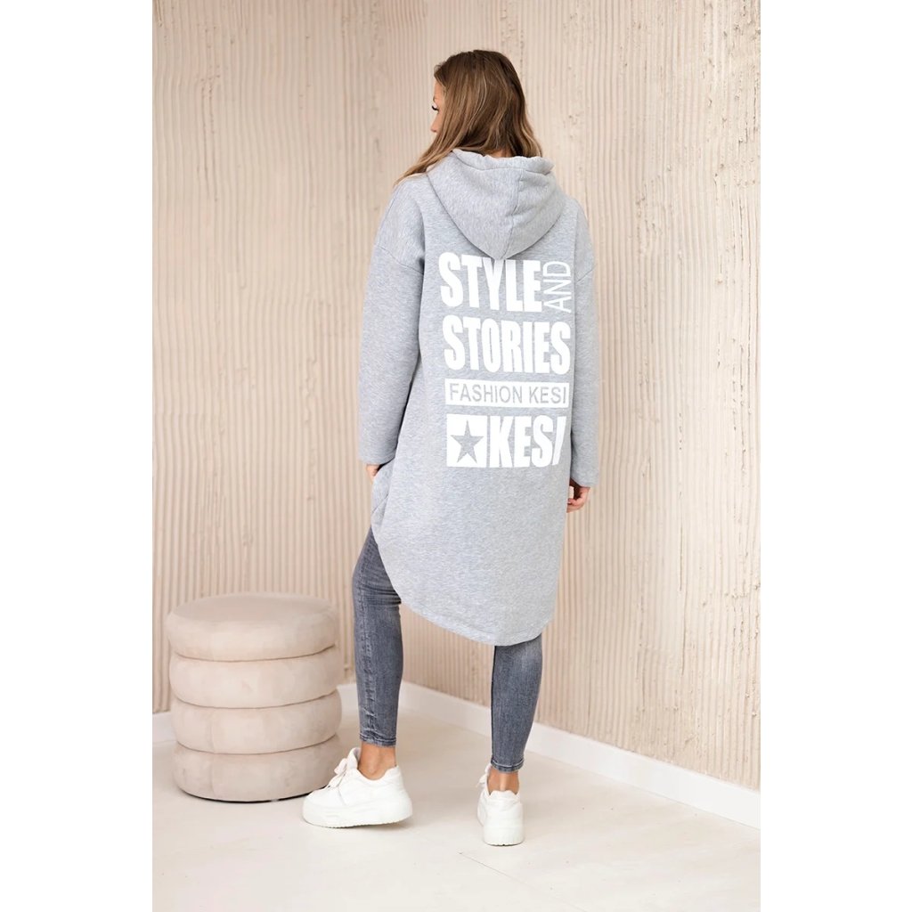 Predstavujeme vám hrejivú mikinu. Mikina má kapucňu, dlhšie zadné a predné vrecká. Na zadnej strane mikiny je potlač. Mikina je vyrobená zo zatepleného materiálu. Veľkosť je univerzálna a vyhovuje dámam, ktoré nosia veľkosť S, M alebo L.