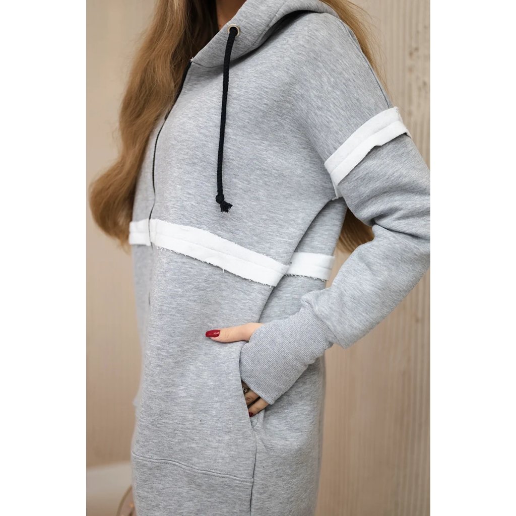 Predstavujeme súpravu mikiny a nohavíc. Mikina má kapucňu a vrecká. Mikina so zapínaním na zips, bočné rozparky v spodnej časti. Nohavice majú široký elastický pás a rebrované nohavice. Súprava je vyrobená z izolovaného materiálu. Veľkosť je univerzálna a hodí sa pre dámy veľkosti S, M alebo L.