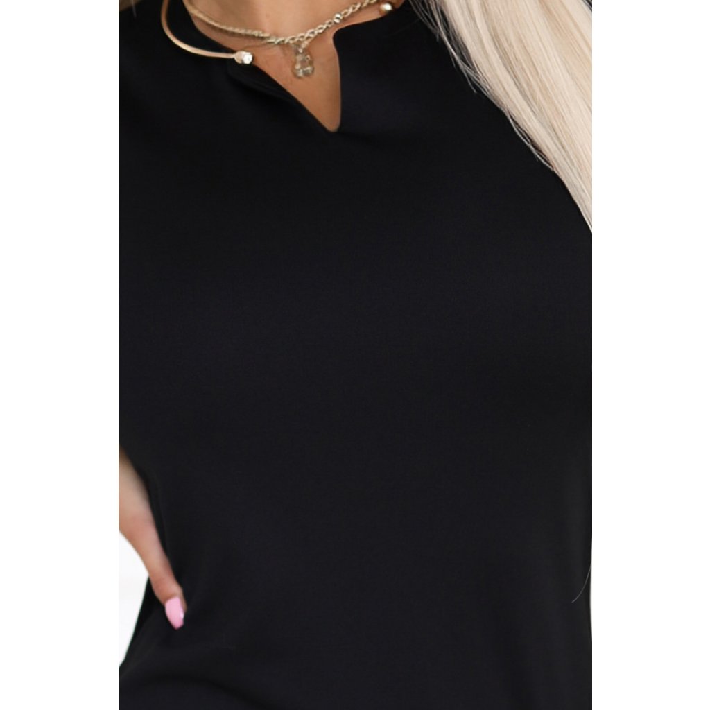 Zmyselné puzdrové šaty s krátkymi rukávmi a ozdobným výstrihom – čierne 608-1